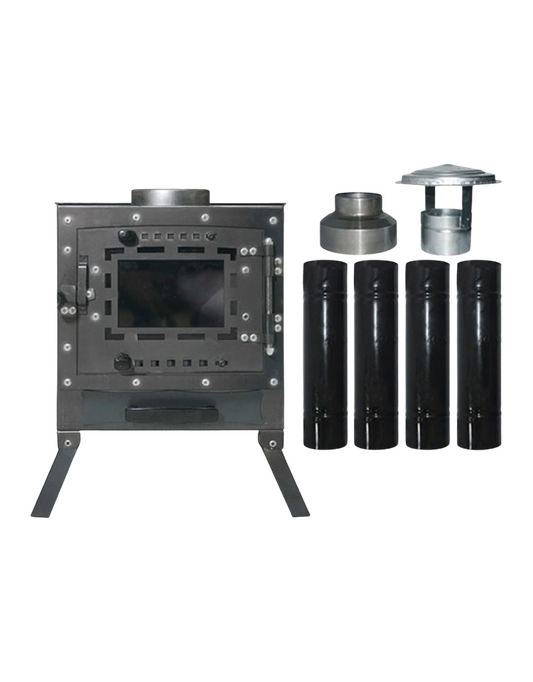 EgeCamp® Kamp Sobası Baca ve Aksesuar Seti (4 Parça Boru + Şapka + Redüktör)
