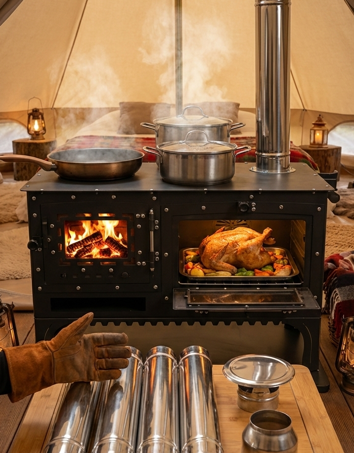 Sadece Soba Değil, Tam Teşekküllü Bir Mutfak Vesta GRAND'ın alametifarikası, sunduğu pişirme olanaklarıdır. Üzerindeki iki adet geniş pişirme gözü sayesinde aynı anda çorbanızı kaynatıp ana yemeğinizi pişirebilirsiniz. Yan taraftaki geniş camlı kuzine fırını ise kampta tepsi yemekleri, börekler hatta bütün bir tavuk pişirmenize olanak tanır.